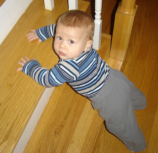This was taken yesterday..he thinks he is sooooo big standing up at the toy! He'll be 7 months on Saturday.